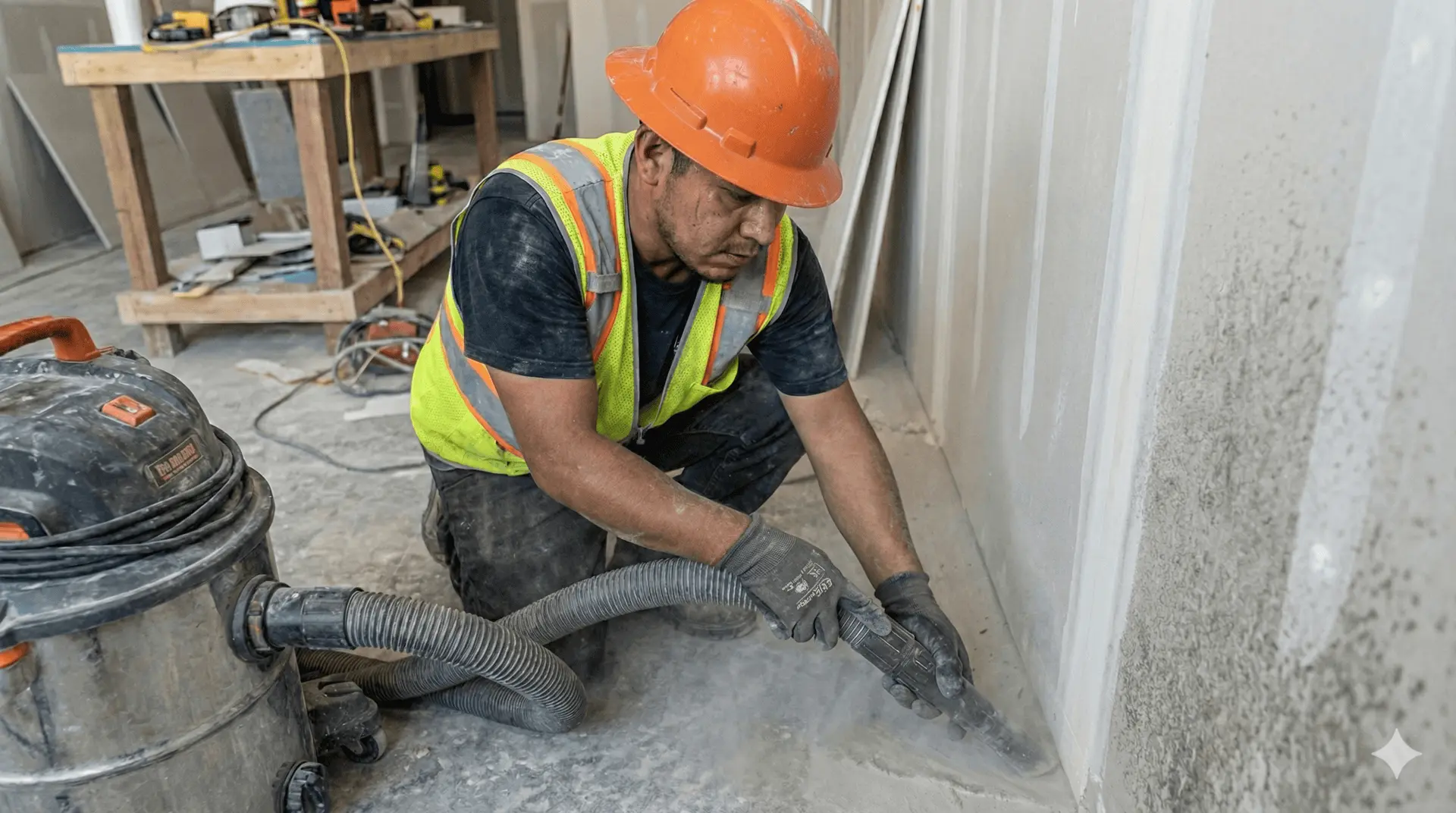 We clear heavy dust and dirt from floors, walls, and surfaces to prep for detailing.